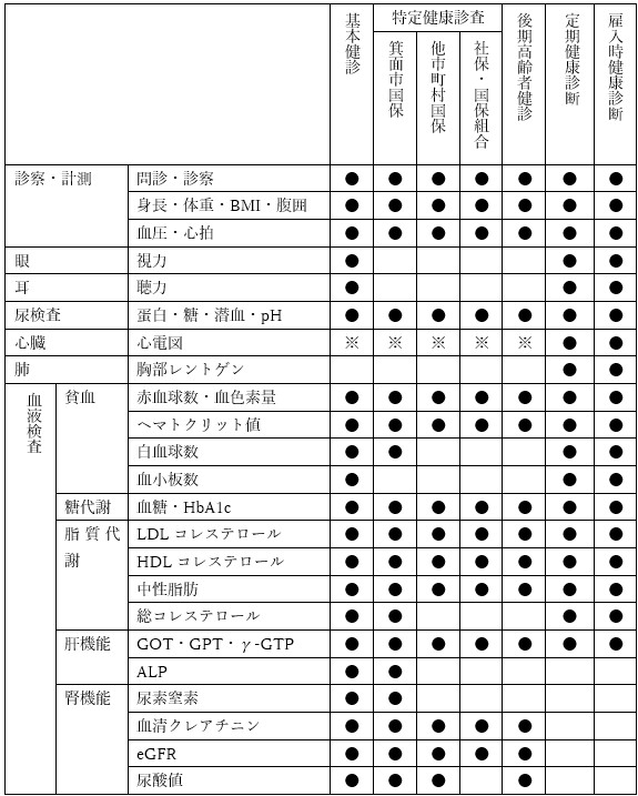 就職や就学のための健康診断とは実施目的が異なるため、検査項目が異なります。